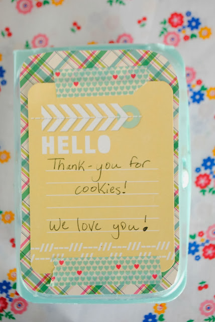 One day we delivered muffins to someone to say "thanks". I'm always saving egg cartons so we placed the mini muffins inside, stuck some cute scrapbook paper on top, and had a very cute gift.